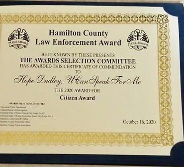 CrimeStoppers honors the UCanSpeakForMe CEO and founder as the CrimeStoppers Board Member of The Year.